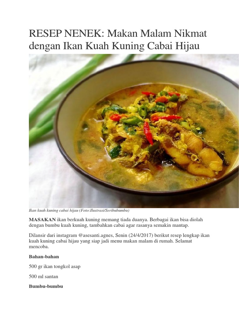 Resep Nenek Makan Malam Nikmat Dengan Ikan Kuah Kuning